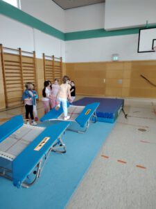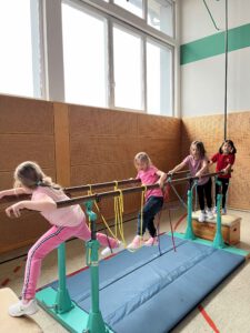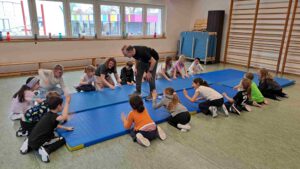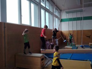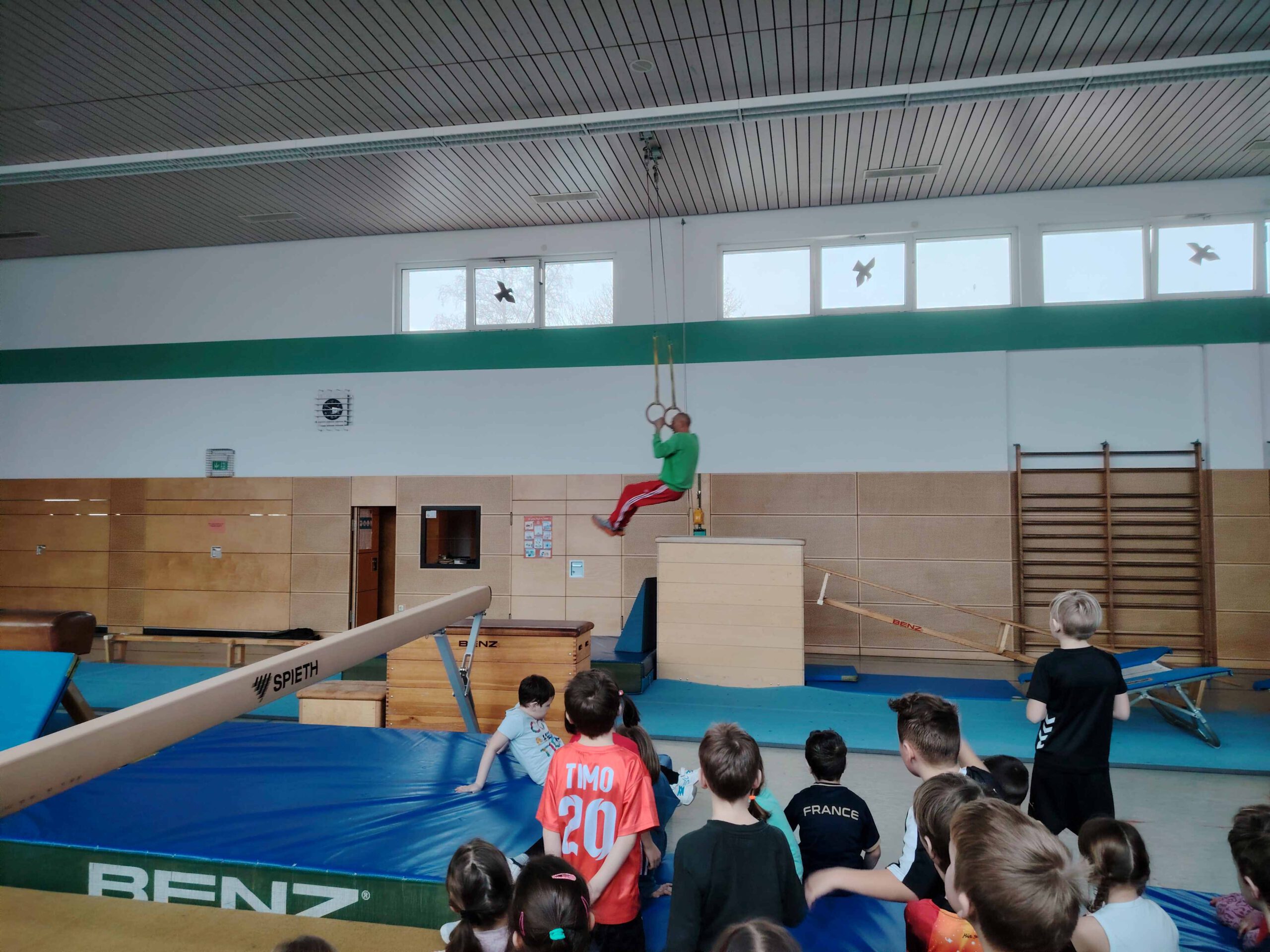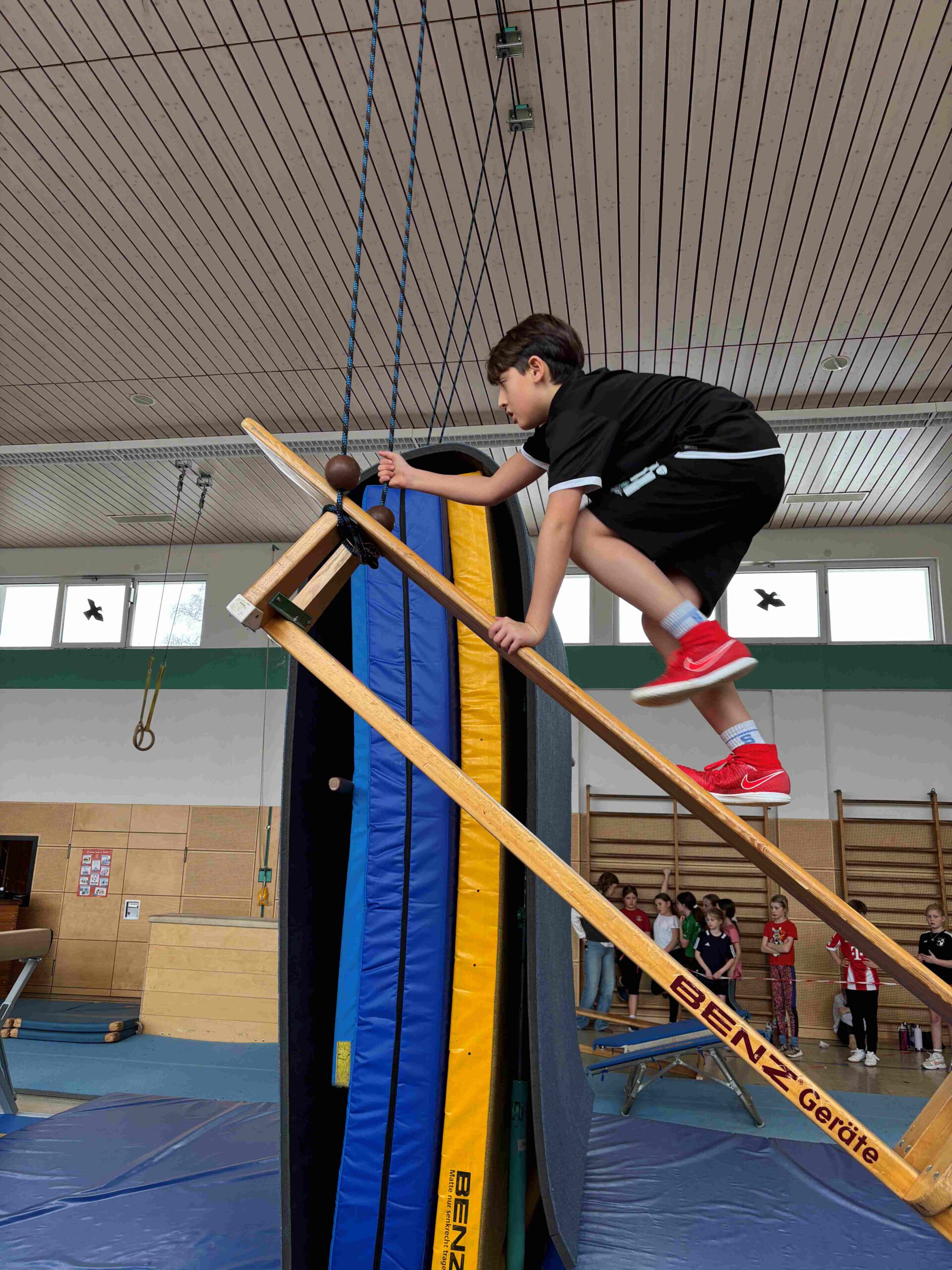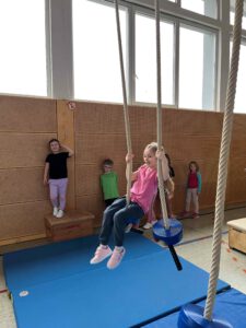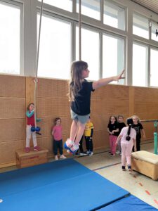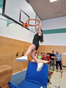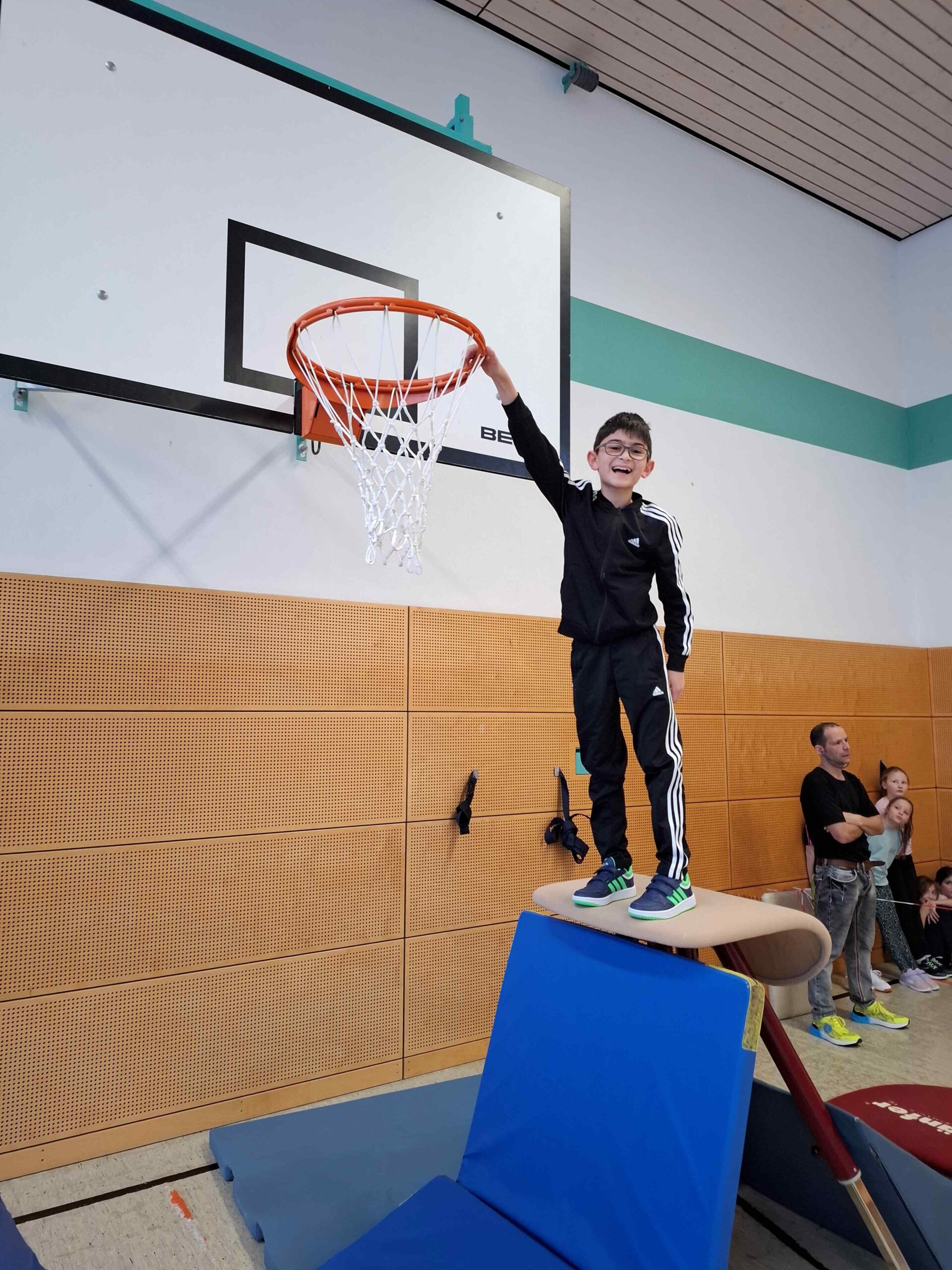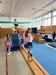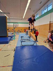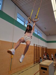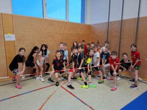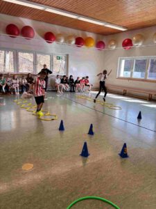 Zum ersten Mal gab es auch einen Parcours für unsere Erst- und Zweitklässler! Sie begaben sich auf eine Abenteuerreise durch den Dschungel und die Kinder hatten viel Spaß beim Bewältigen der Aufgaben. Vielen Dank an Herrn Neumann, der sich tolle Stationen überlegt und einen super Parcours aufgebaut hat.