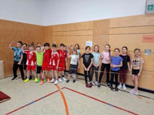 In diesem Schuljahr konnten die Bundesjugendspiele endlich wieder stattfinden. Unterstützt durch den Sportverein waren alle Kinder der Klassen 2-4 im Stadion mit viel Eifer dabei und zeigten tolle Leistungen. Neben den Disziplinen Wurf, 50m- Lauf und Weitsprung gab es auch noch eine Transport- und eine Pendelstaffel. Diese waren wieder einmal  besonders spannend und wurden von der Tribüne lautstark angefeuert. Alle Klassen erhielten für ihre Teilnahme einen Pokal und eine Urkunde. Die Ehrenurkunden für besonders viele Punkte und super Leistungen wurden anschließend noch in der Turnhalle übergeben. Herzlichen Glückwunsch an alle und vielen Dank an Herrn Kösler für die tolle Organisation und den reibungslosen Ablauf.