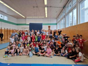Nach 4 Jahren Pause konnten sich die Viertklässler in diesem Jahr endlich wieder mit einer großen Abschlussfeier in der Stadthalle von ihrer Grundschulzeit verabschieden. Alle 73 Kinder waren an der Aufführung des Musicals “Jedes Kind kann irgendwas” beteiligt. Es war eine super Aufführung und ein großer Erfolg. Den tosenden Applaus werden die Kinder hoffentlich nie vergessen.