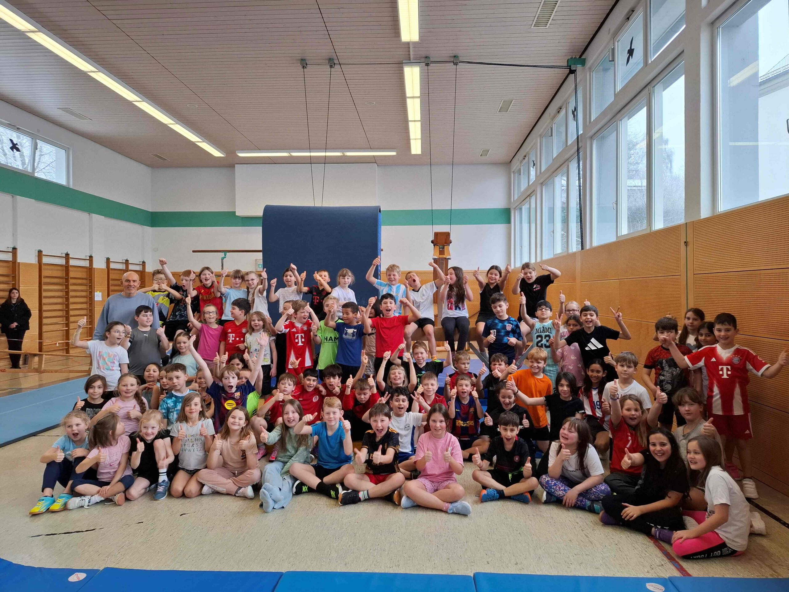 Unter großem Applaus konnten am Ende alle Kinder eine Medaille, sowie die Siegerteams jeder Klassenstufe einen Wanderpokal mit nach Hause nehmen.