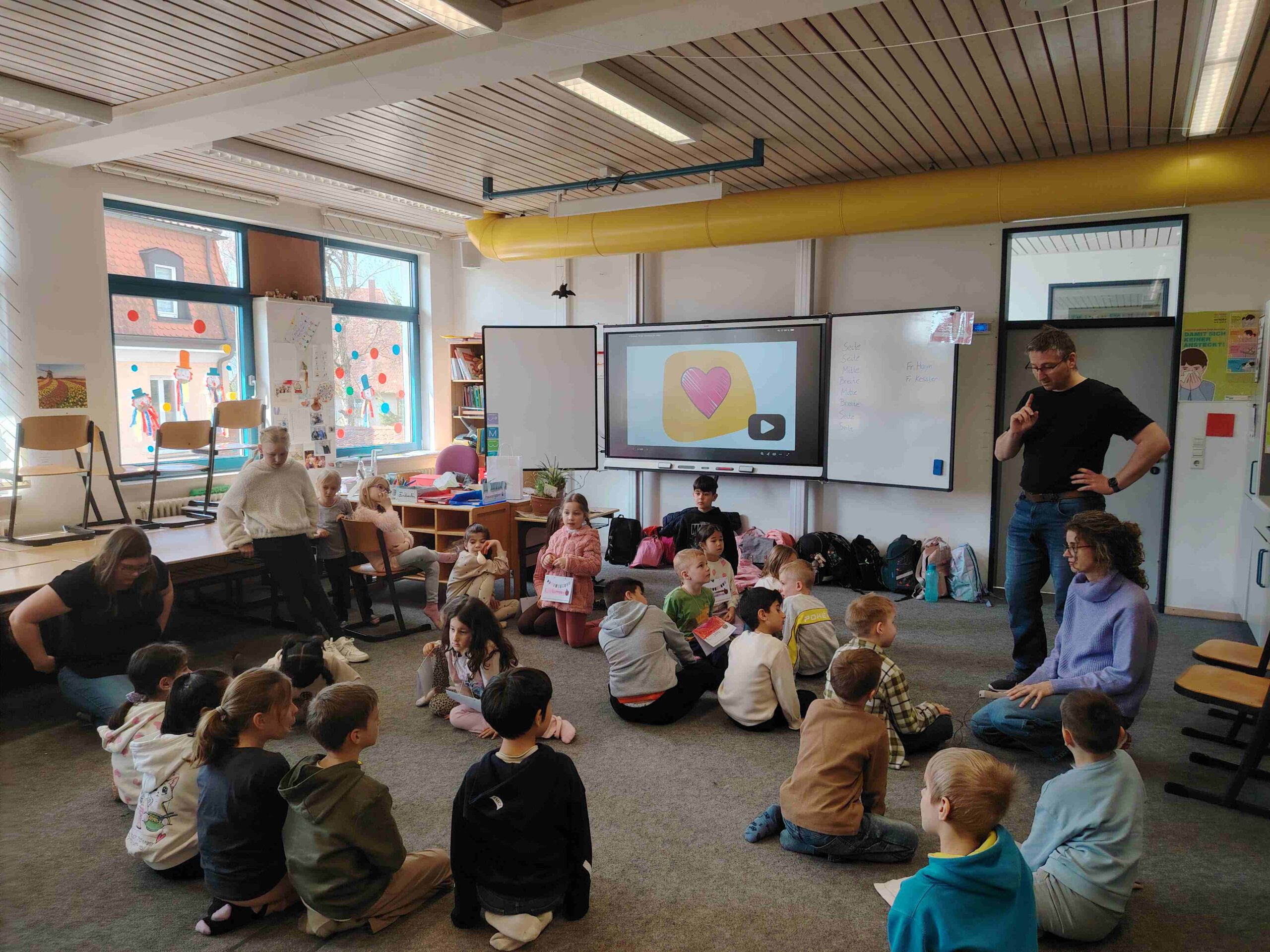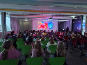 Die Drittklässler durften in der Stadtbücherei eine Autorenlesung von Rüdiger Bertram besuchen. Dabei las er uns aus seiner Buchreihe “Stinktier und Co” vor. Allen gefiel das Buch sehr gut. Durch einen gekonnten Lesevortrag gelang es ihm, alle Schülerinnen und Schüler zu begeistern. Anschließend beantwortete er noch viele Fragen der Kinder. Am Ende durften alle sogar noch eine Autogrammkarte mit nach Hause nehmen.
