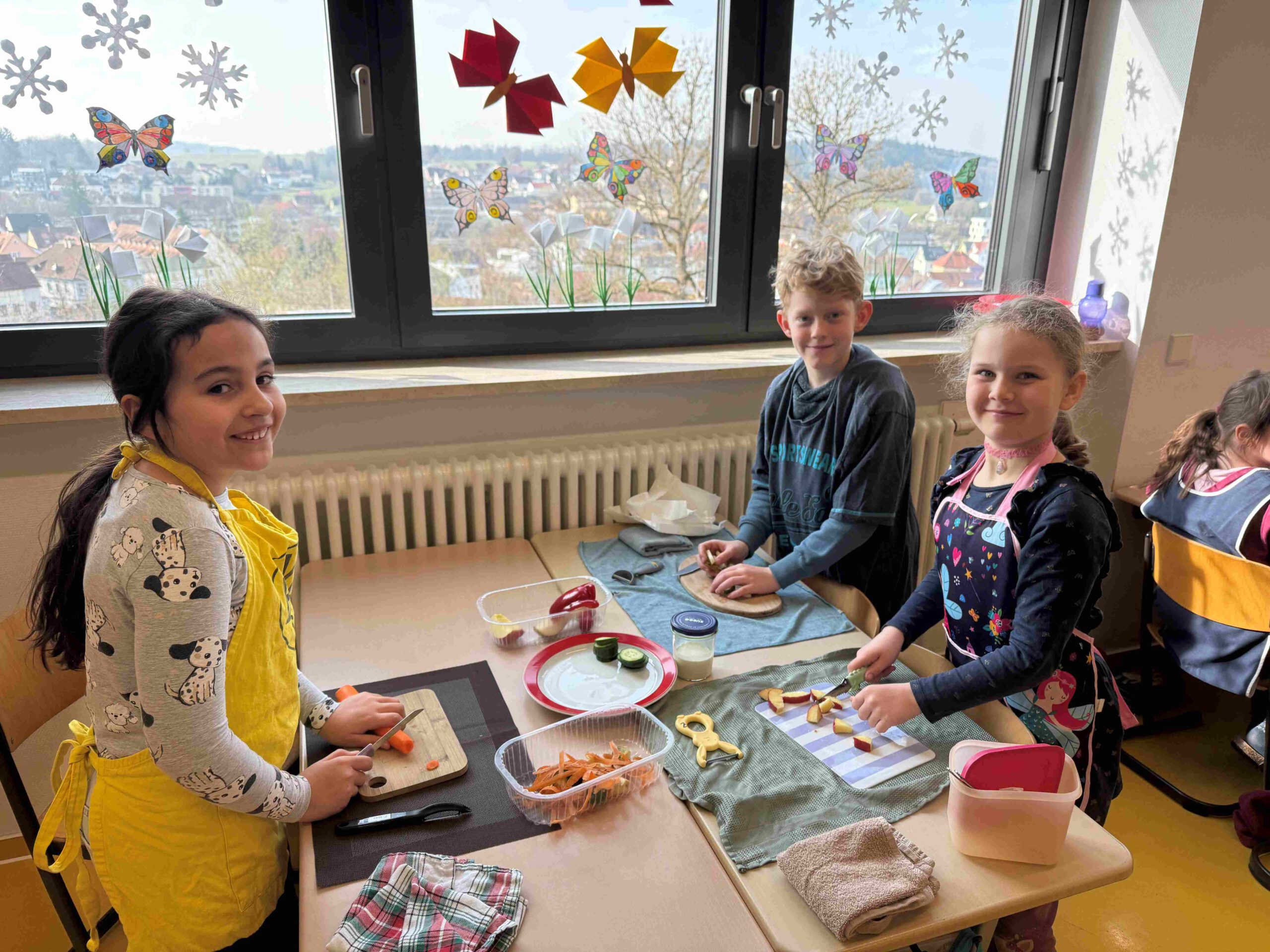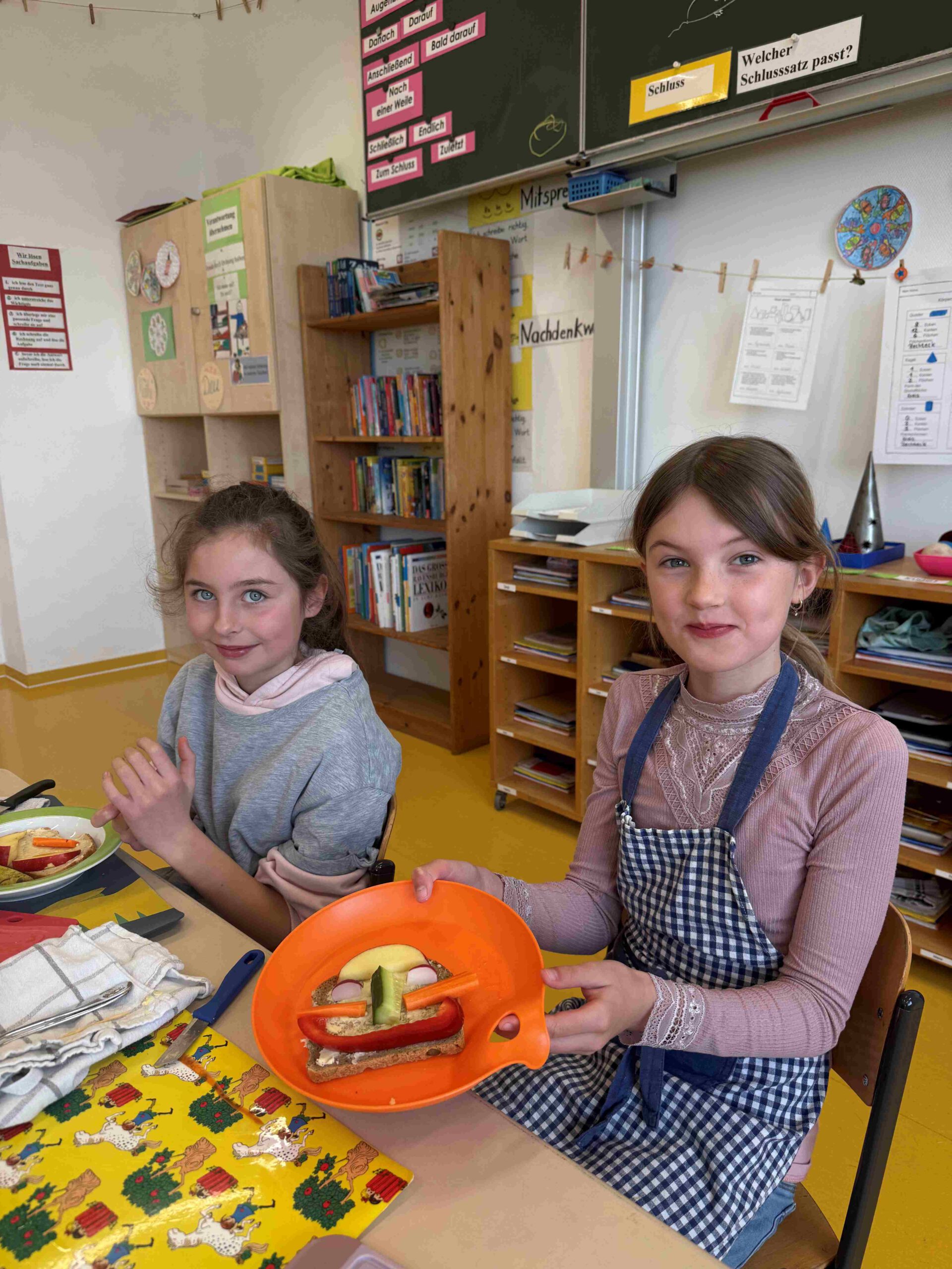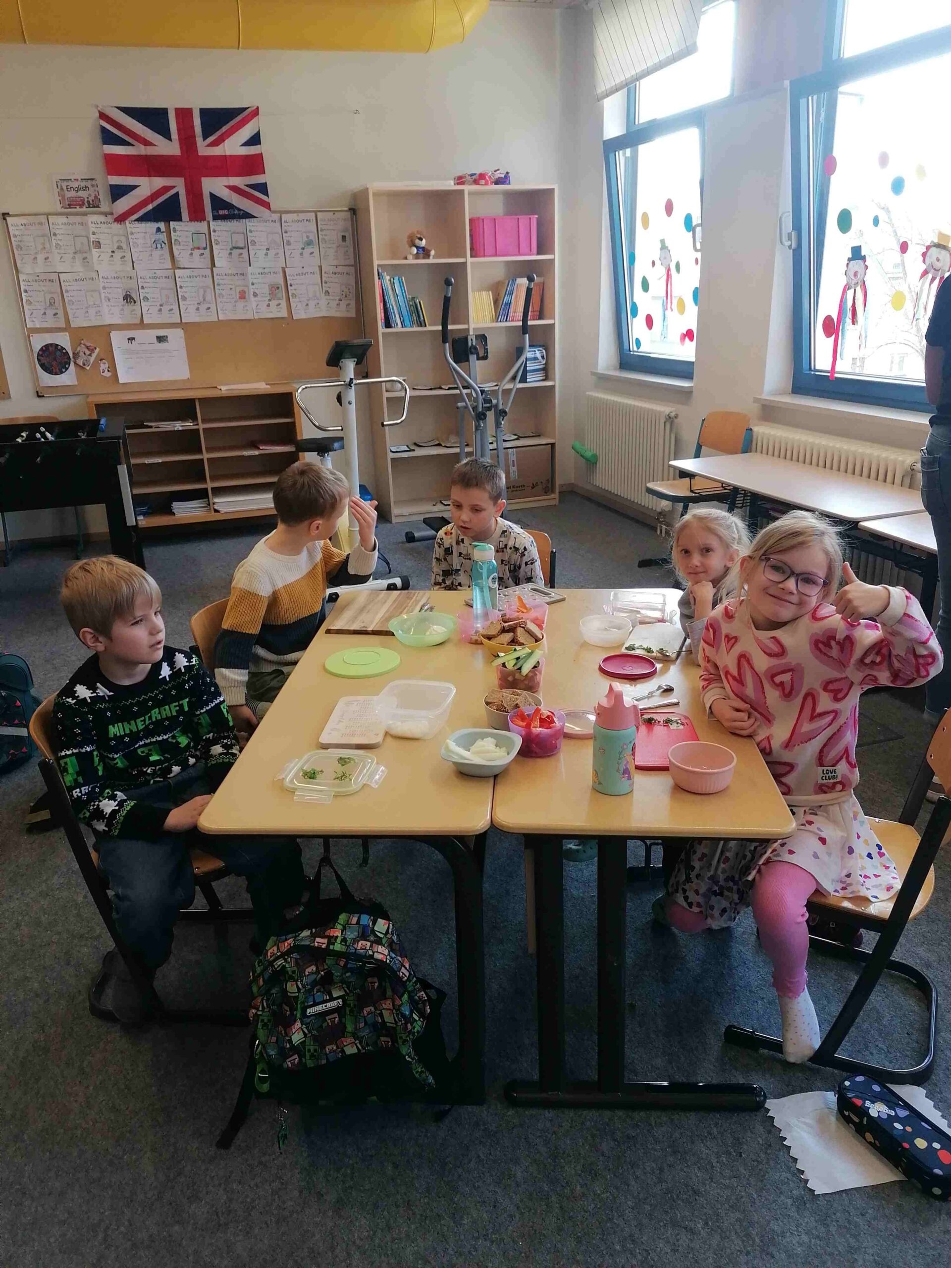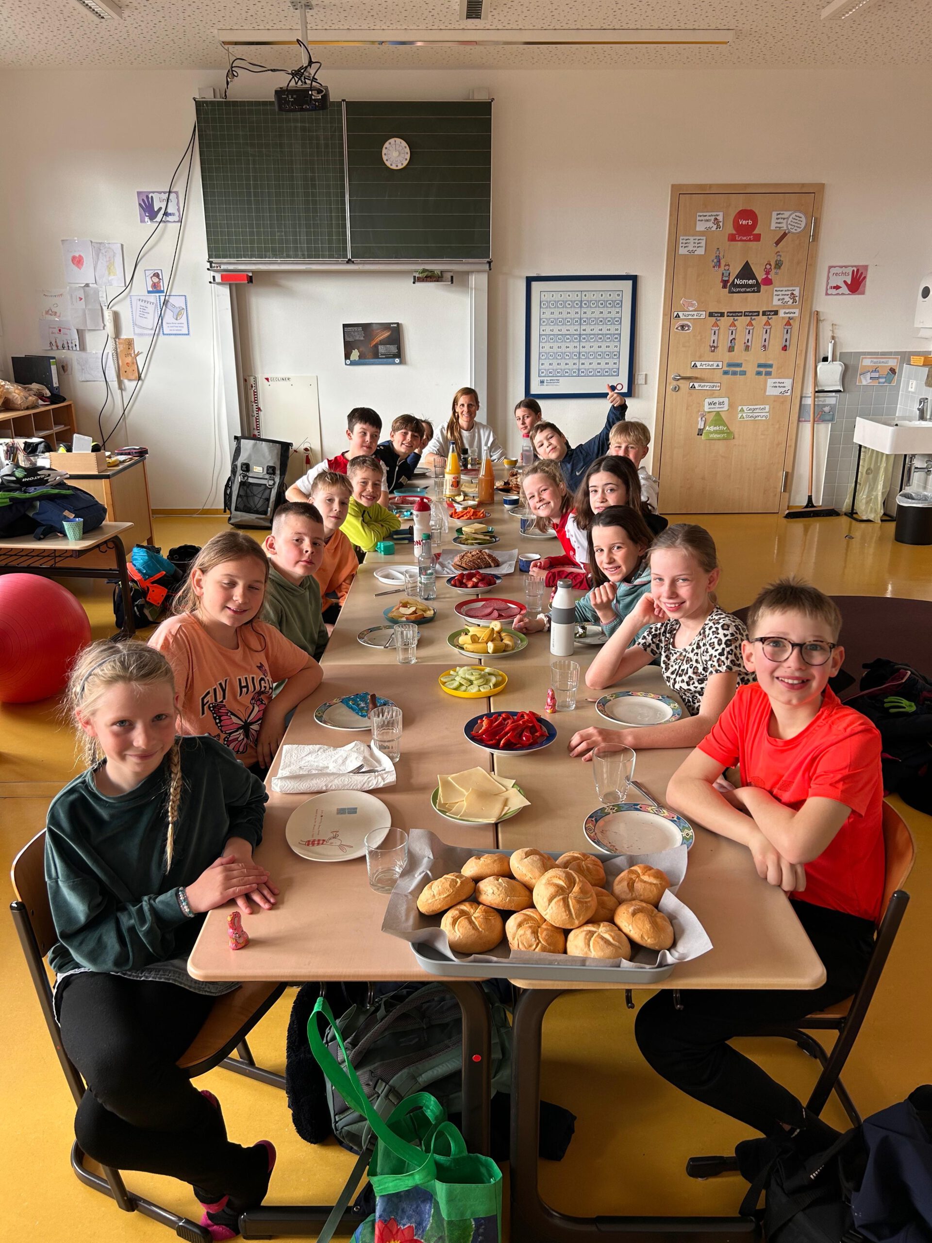 Die Zweitklässler machen ein gesundes Frühstück mit leckeren Broten
