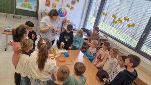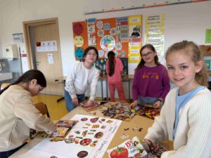 Die Klassen 3a und 3b arbeiteten begeistert mit, als Frau Ruthardt- Storz vom BEKI- Team (BEwusste KInderernährung) sie über ausgewogene Ernährung und die Ernährungspyramide informierte. Gesund und bunt kann sehr lecker sein!!