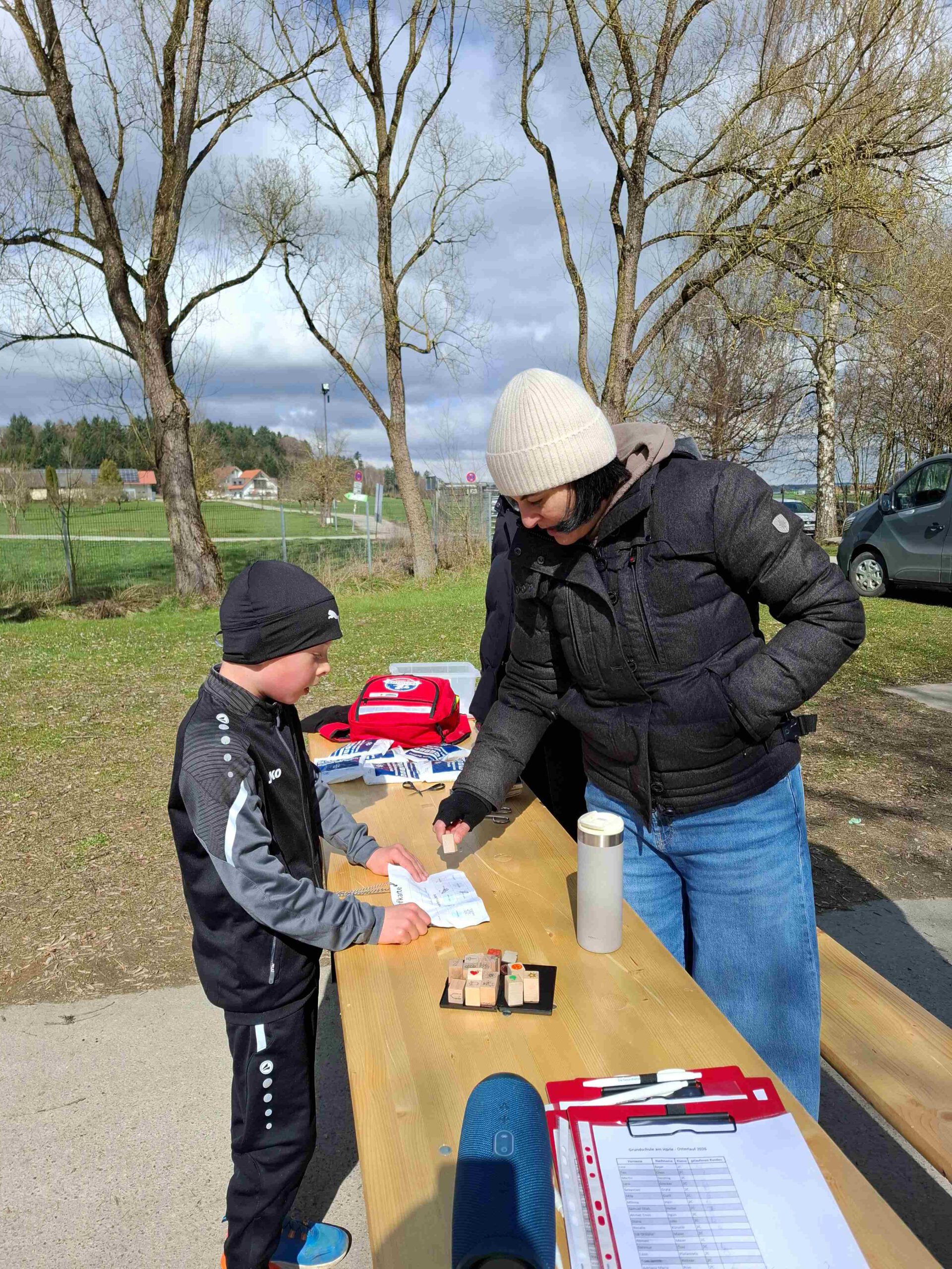 Zum Abschluss der Ausbildung erhielten die Kinder eine Urkunde und Michael Bertel vom DRK Bodenseekreis übergab die neue Erste- Hilfe- Tasche. Somit steht einem guten Start der Helferinnen und Helfer nichts mehr im Weg.